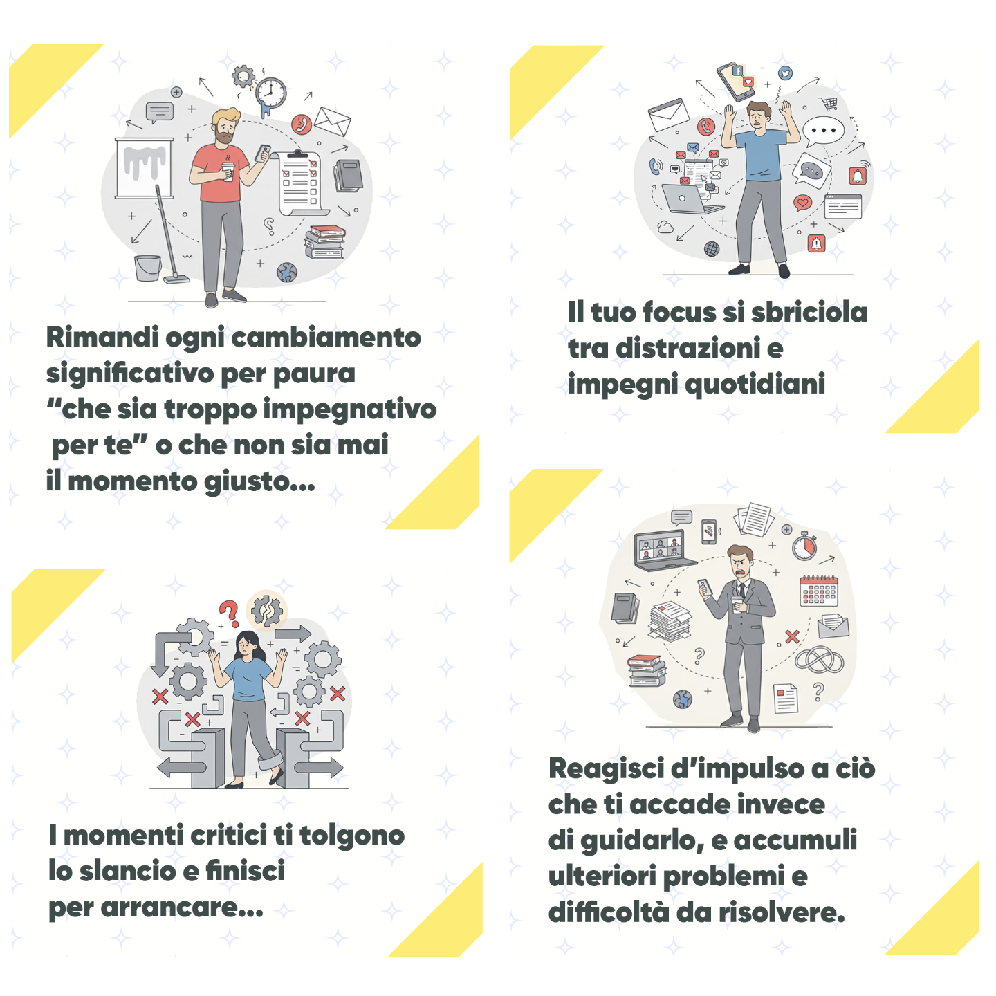 Tra distrazioni, ostacoli e paure ti ritrovi sempre nello stesso punto e non ottieni i risultati che meriti: continui a restare bloccato e ti senti confuso senza capire davvero perché.